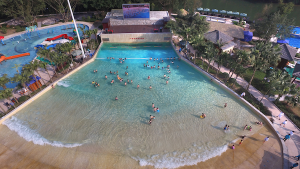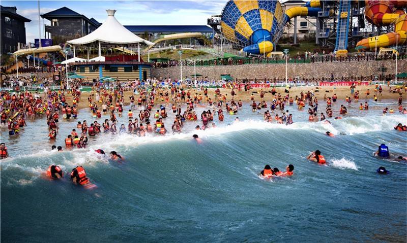 鼓风式造浪主要由气室、风机、阀门系统、调速系统、风管系统、控制系统等组成,其特点是结构简单,它的工作原理是:是将离心风机吹出的风流引入气室,通过周而复始的抽/排空气,压迫气室内的自由水面兴起波流。改变抽/排气流的变换频率和气流大小,即可改变波浪的大小和长度。鼓风式造浪的浪高在0.5-1.2米,浪波及长度在50米,该设备适用于微小型水上乐园,总园区面积小于十亩,海浪池面积在1000平方米左右...... |